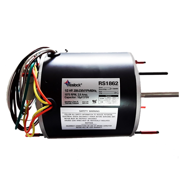 Air-Conditioning Condenser Fan Motor, 1/2 HP, 208-230V, 1Ph 60Hz, 1075 RPM, 2.8Amp.